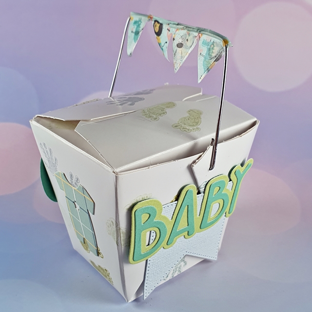 - Box gut trocknen lassen, ggf mit einem Fön oder einer Heißluftpistole nachhelfen. In der Zwischenzeit Babymotive und Buchstaben für "Hello Baby" ausstanzen und zusammen setzen.