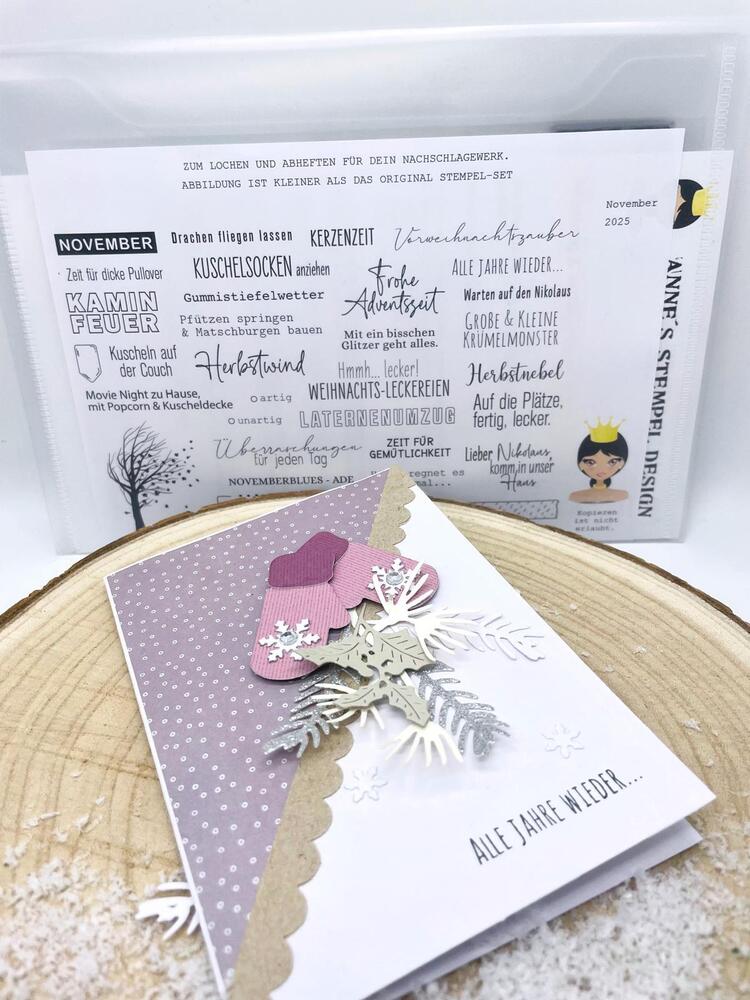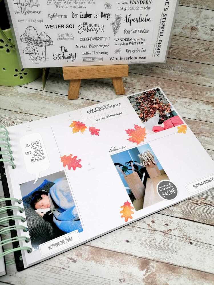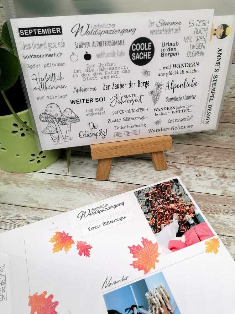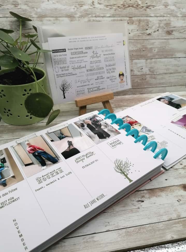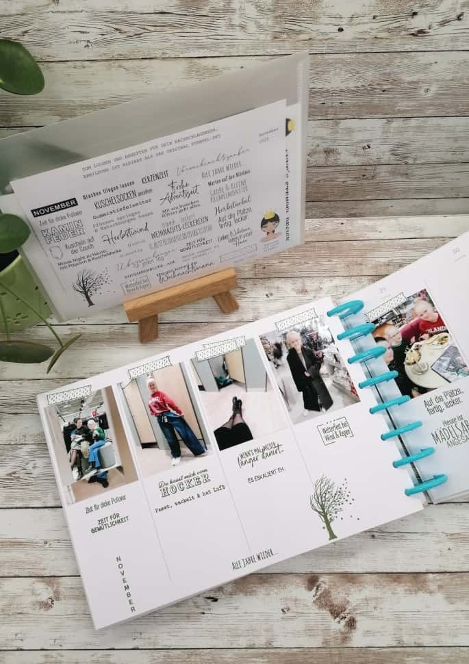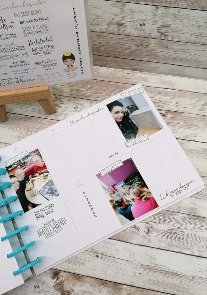 Auf der November-Stempelplatte findest Du traditionell schon einiges, was in Richtung Advent, Nikolaus und die Vorweihnachtszeit weist. So gibt es jede Menge Texte für's Plätzchenbacken und Nikolausgeschenke. In Claudias Planner siehst Du, wie einfach es ist, für Alltagsbilder den richtigen Text zu finden und einzusetzen.