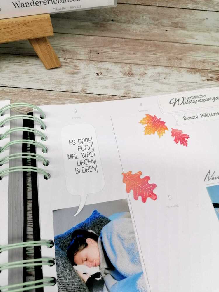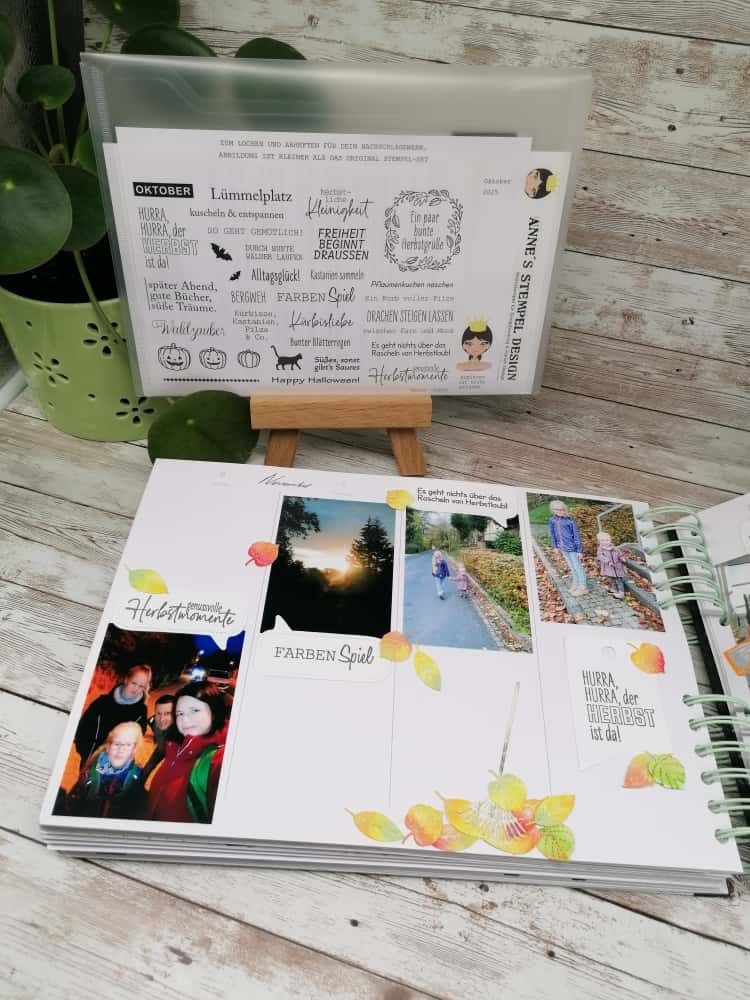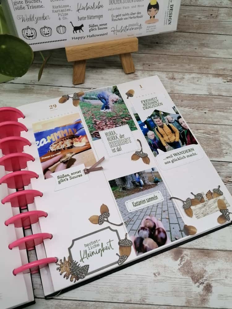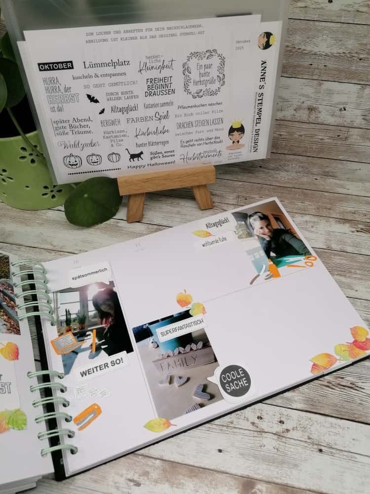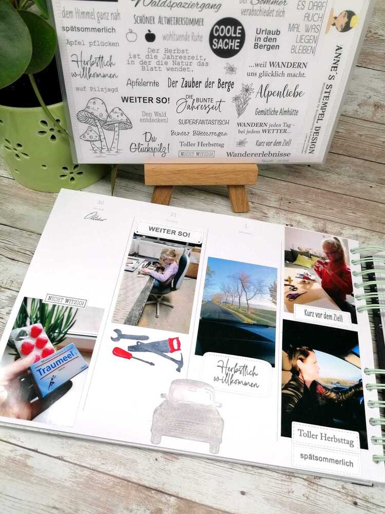Auf der November-Stempelplatte findest Du traditionell schon einiges, was in Richtung Advent, Nikolaus und die Vorweihnachtszeit weist. So gibt es jede Menge Texte für's Plätzchenbacken und Nikolausgeschenke. In Claudias Planner siehst Du, wie einfach es ist, für Alltagsbilder den richtigen Text zu finden und einzusetzen.
