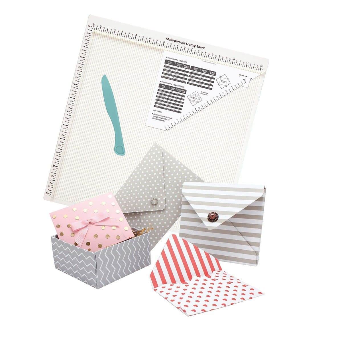 Mit diesen Falzbrettern kannst Du üblicherweise auch Umschläge herstellen (dann liegt eine Art Dreieck bei) und meist gibt es Vorgaben, um Boxen und Kartönchen zu falzen.