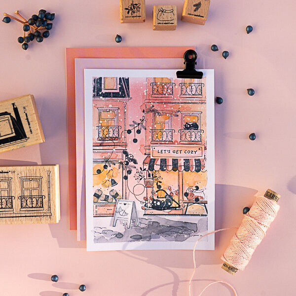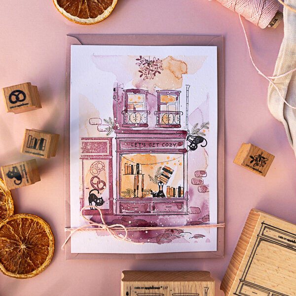 Cats on appletrees produziert liebevoll illustrierte Motivstempel. Klassisch auf Holz montierte Stempel erzählen kleine Geschichten rund um Friedegunde, die Katze, und eine findige Hundemeute, die reichlich Unruhe in das beschauliche Katzenleben bringt. Die Motive sind so designed, dass sie sich untereinander kombinieren lassen und immer neue Varianten ergeben.