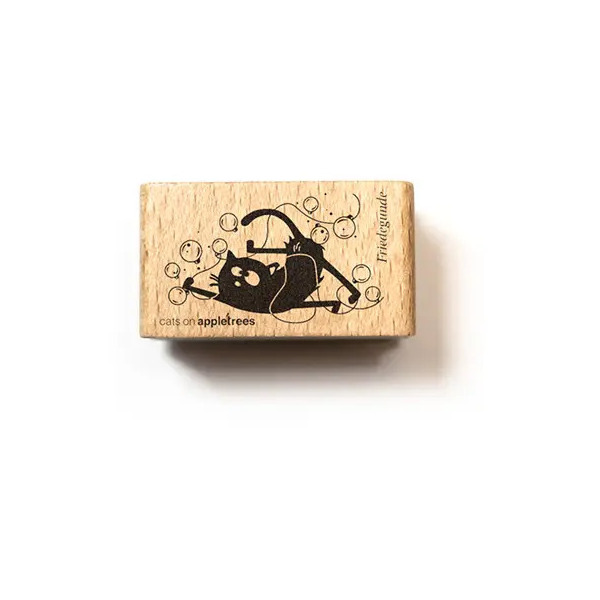 Cats on appletrees produziert liebevoll illustrierte Motivstempel. Klassisch auf Holz montierte Stempel erzählen kleine Geschichten rund um Friedegunde, die Katze, und eine findige Hundemeute, die reichlich Unruhe in das beschauliche Katzenleben bringt. Die Motive sind so designed, dass sie sich untereinander kombinieren lassen und immer neue Varianten ergeben.