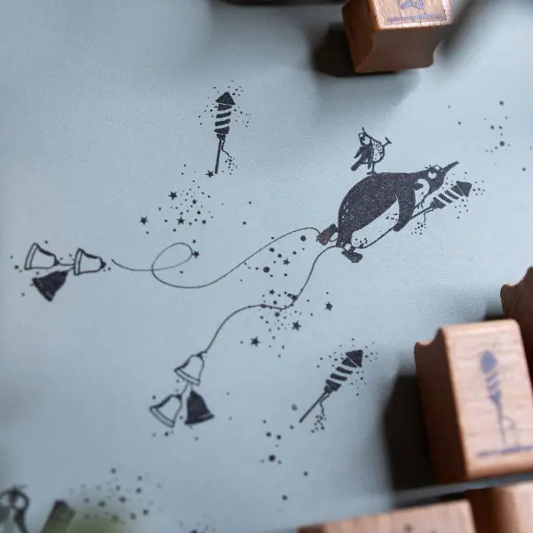 Cats on appletrees produziert liebevoll illustrierte Motivstempel. Klassisch auf Holz montierte Stempel erzählen kleine Geschichten rund um Friedegunde, die Katze, und eine findige Hundemeute, die reichlich Unruhe in das beschauliche Katzenleben bringt. Die Motive sind so designed, dass sie sich untereinander kombinieren lassen und immer neue Varianten ergeben.