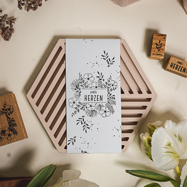 Die Stempel sind aus hochwertigem Gummi gefertigt und liefern sehr saubere Stempelabdrücke mit allen Stempelfarben.