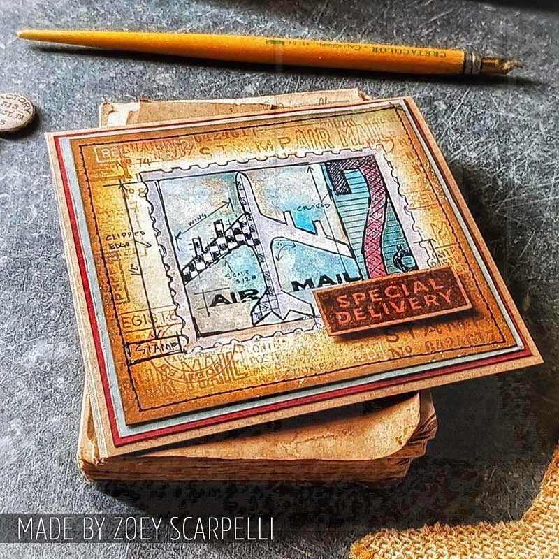 Ein perfektes Paar: Clear Stamp Set und eine passende Schablone von Tim Holtz!
