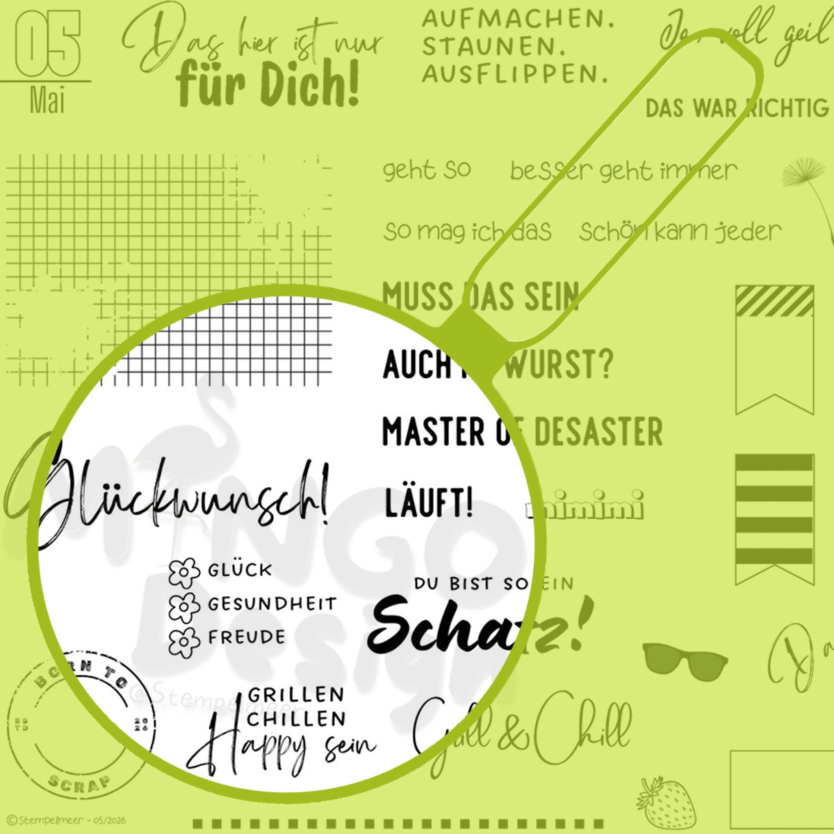 Info: Die Texte lassen sich wunderbar mit den Stempeln aus den anderen Monatssets kombinieren!