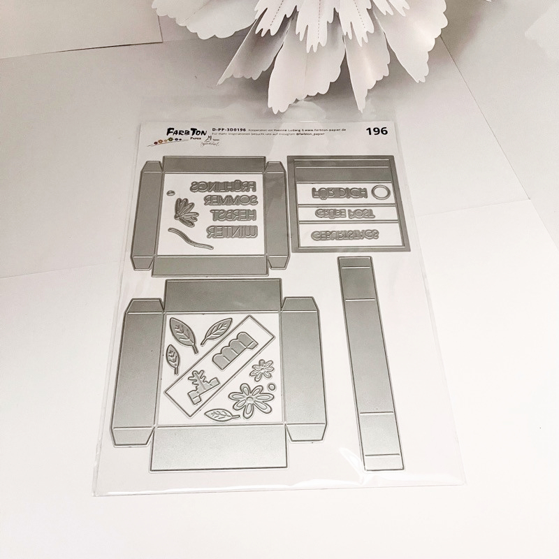Enthalten sind die Stanzen für die Box mit Unterteil, Deckel und der Stufe.
