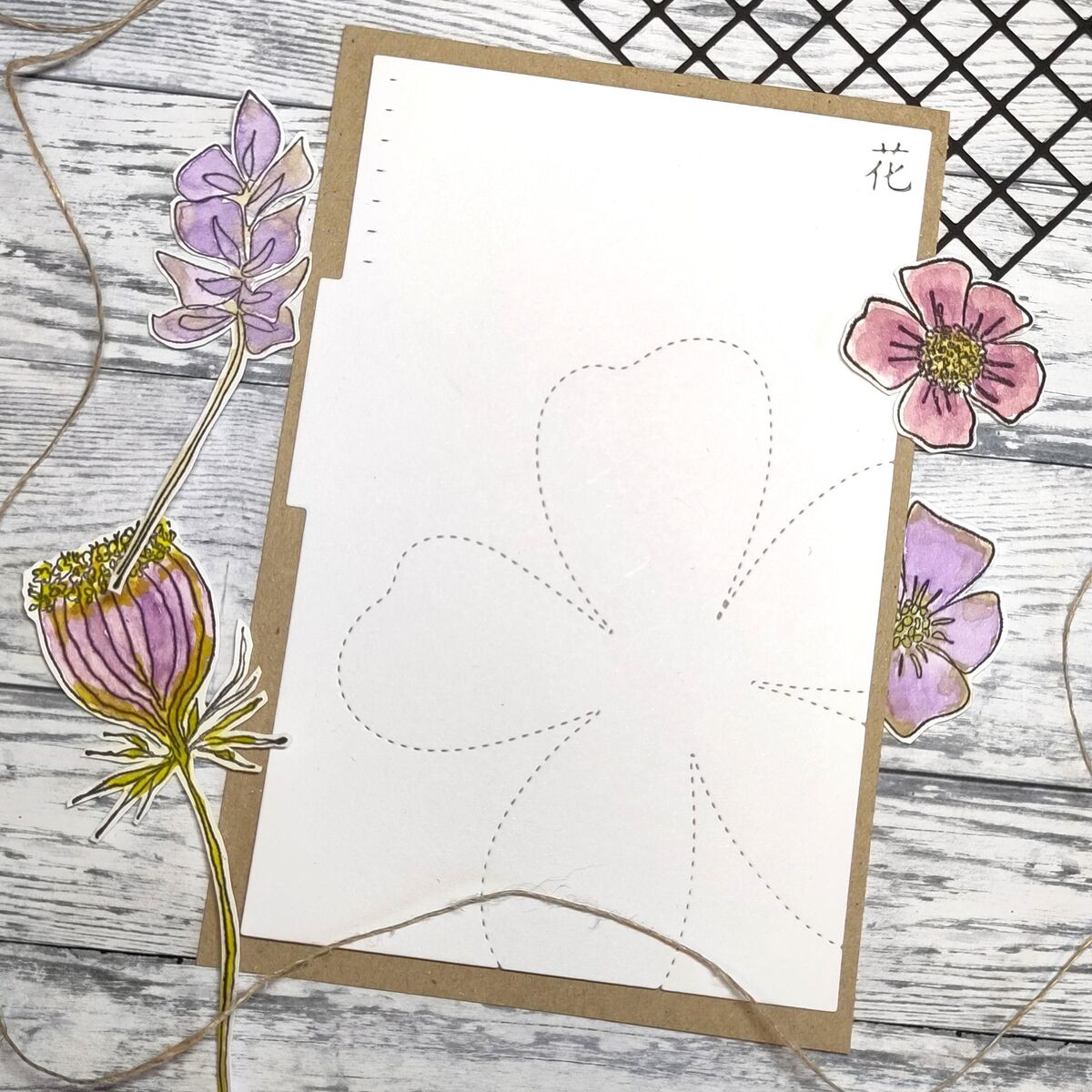Motiv: großes Notizzettelblatt mit Ausstanzungen und Einprägungen in Blumenform