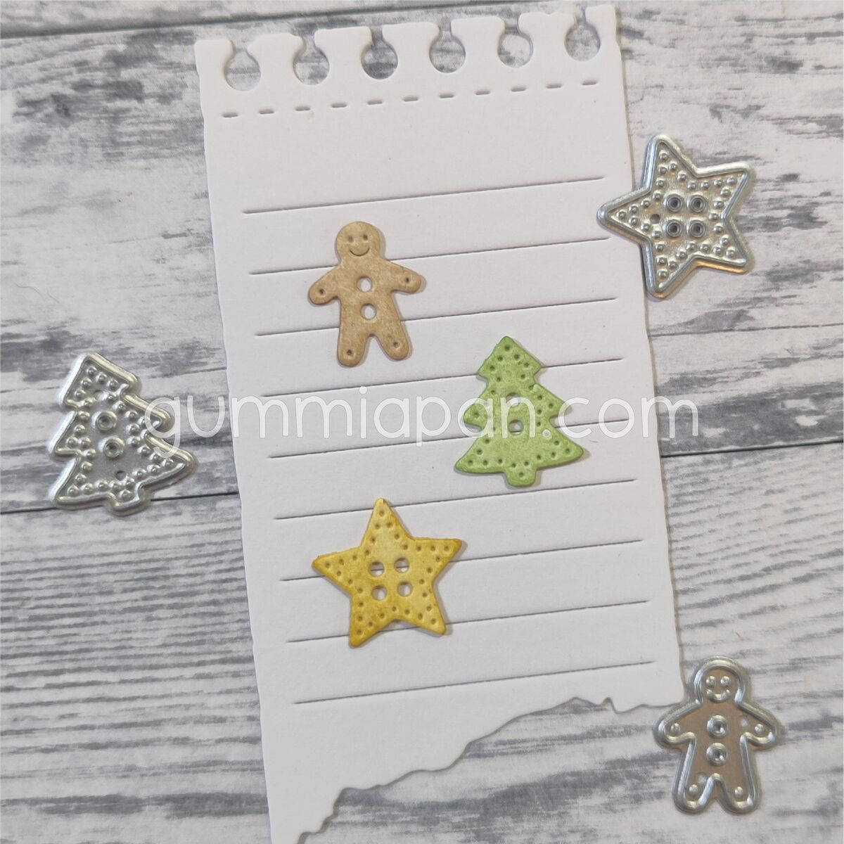 Motiv: Knöpfe in Form von Lebkuchenmann, Tannenbaum, Stern