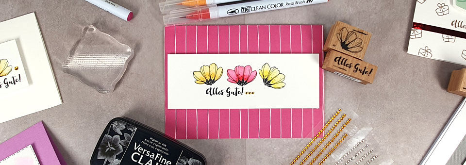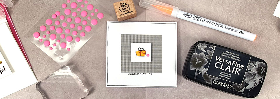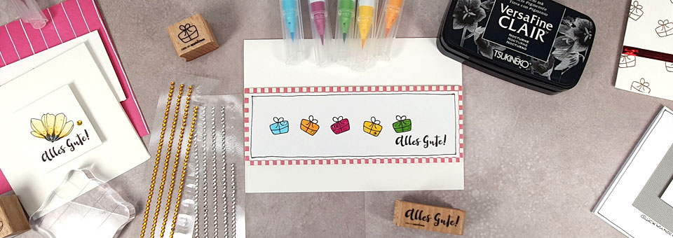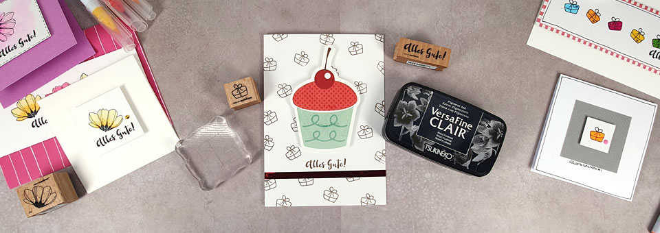- Gute Motive sind z.B. eine Blüte oder auch ein Geschenkpaket. Eine Blüte ist enorm vielseitig und auch für „Gute Besserung“ einsetzbar oder notfalls sogar für Trauerkarten. Das Päckchen ist wunderbar für alle Geburtstage, Jubiläen und Hochzeiten.